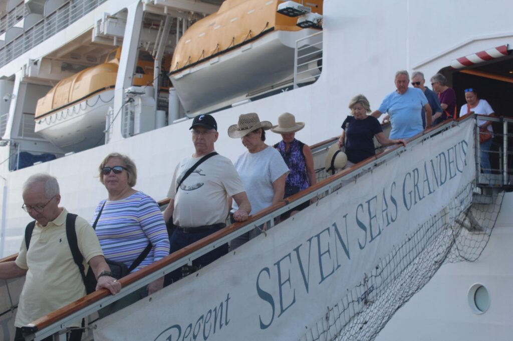 La llegada del crucero fue amenizada por la Banda de Música del Ayuntamiento, mientras que el Seven Seas Grandeur permanecerá en el puerto hasta las 20:00 horas antes de continuar hacia Puerto Quetzal, Guatemala.