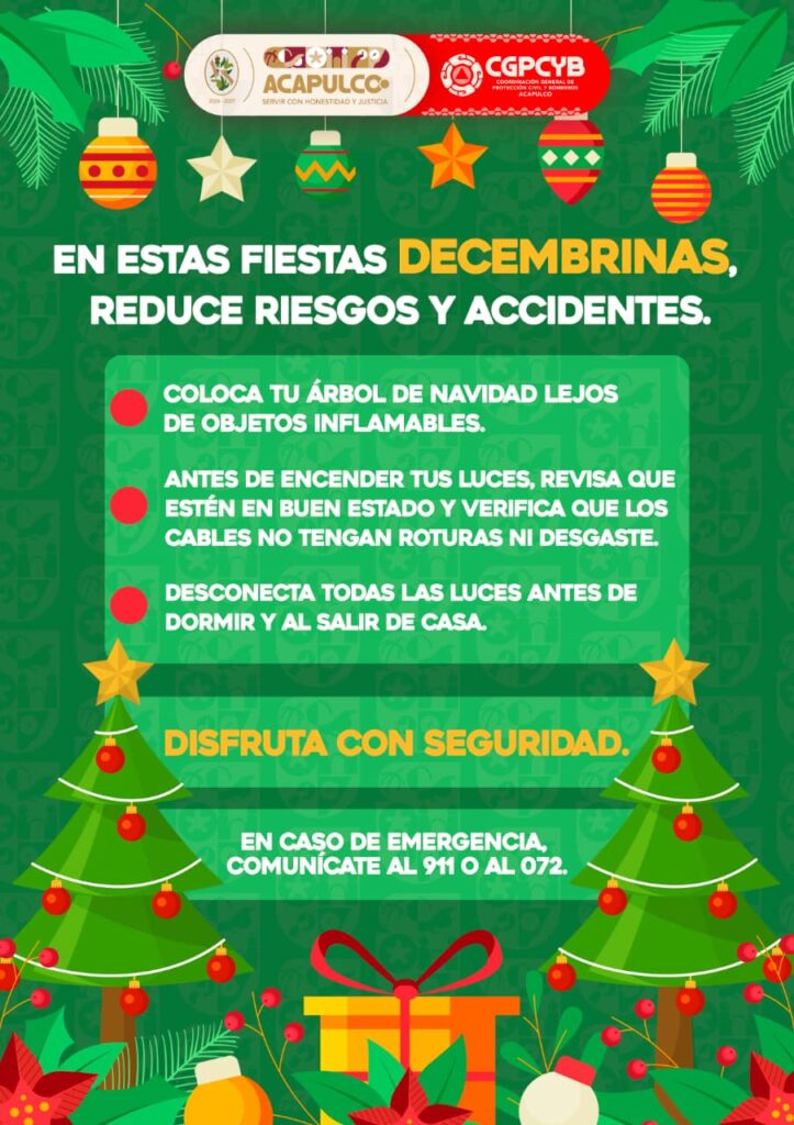 La Coordinación de Protección Civil y Bomberos de Acapulco recuerda a las familias la importancia de mantener medidas básicas de prevención en esta temporada.