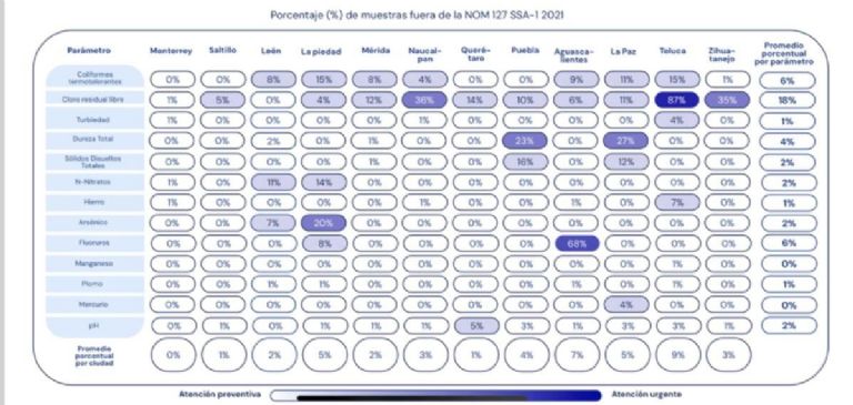 “La Fundación tomó aproximadamente 920 muestras y analizó parámetros en laboratorios acreditados diferentes al nuestro. Ante me es muy grato compartirles que Monterrey registró el agua de mejor calidad en comparación con otras 11 ciudades”, destacó el director general de Agua y Drenaje de Monterrey, Eduardo Ortegón Williamson.
