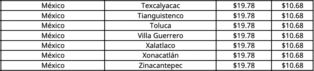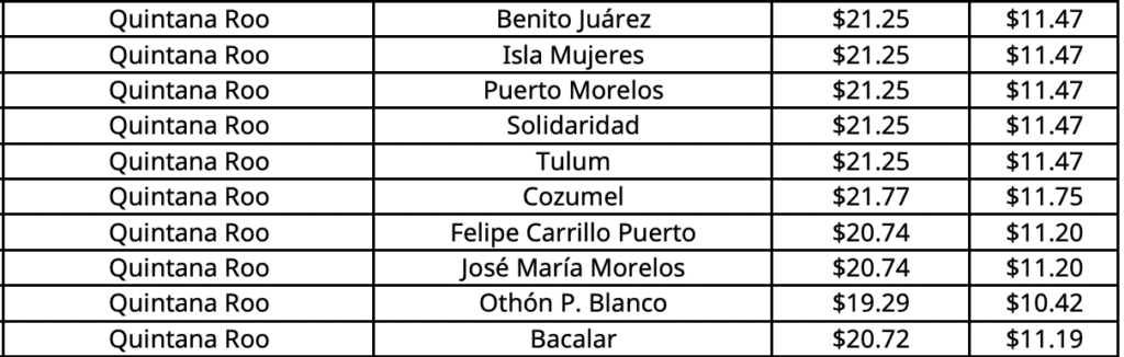 En Chetumal (Othón P. Blanco), capital de Quintana Roo, el precio máximo aplicable por kilogramo aumenta a 19.29 pesos.