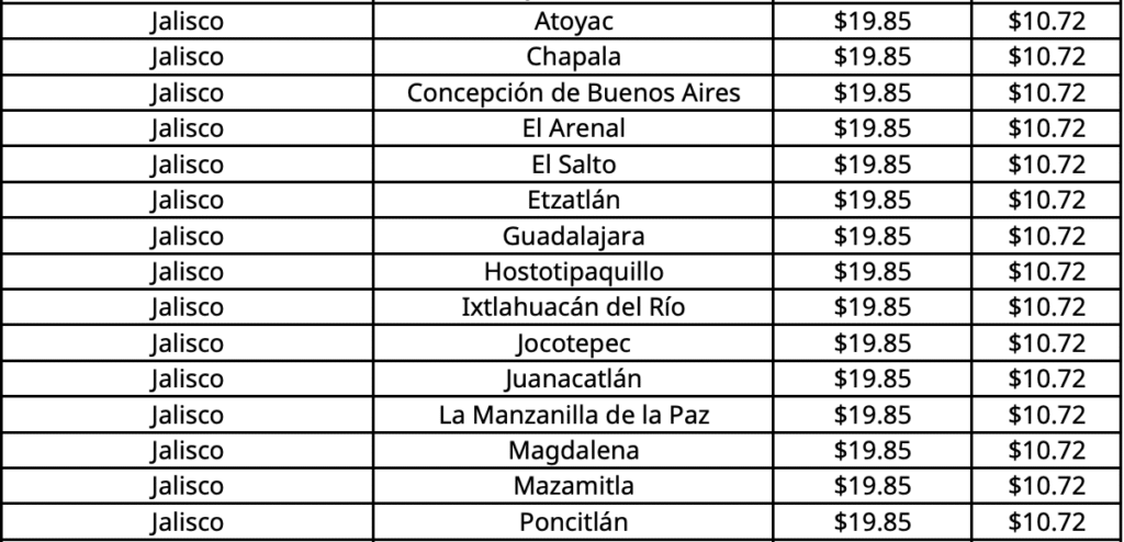 La CNE informó que el costo máximo del combustible será de 19.85 pesos en Guadalajara, la capital de Jalisco.
