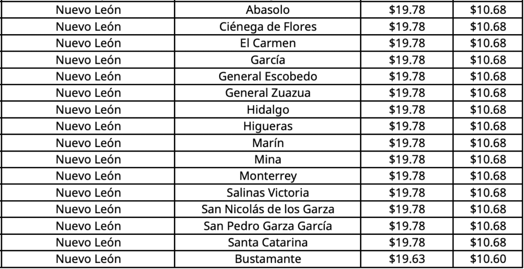 En el noreste del país, como en Monterrey, Nuevo León, el precio máximo aplicable del combustible, según la CNE, será de 19.78 pesos.
