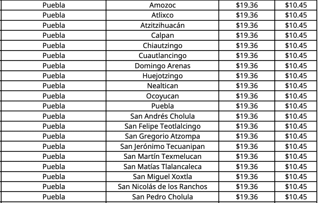 En Puebla capital el costo máximo por kilogramo será de 19.36 pesos.