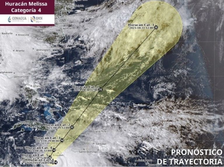 Melissa se desplaza al oeste a 7 kilómetros, podría convertirse en un huracán de mayor categoría elevando el riesgo en la población cercana a las zonas de alerta, por el centro del fenómeno ahora se activan las alertas solo en Jamaica pese a que se mencione una de las entidades mexicanas.