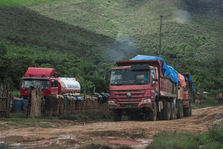 Una cisterna y camiones con combustible en Santa Cruz del Valle Ameno, a puertas del Parque Nacional Madidi, en Apolo, Bolivia. Foto: Marcelo Pérez para Mongabay Latam
