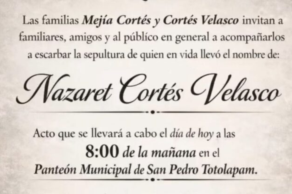 Nazareth Cortés Velasco, comisaria ejidal y defensora del territorio en San Pedro Totolápam, fue asesinada a balazos la madrugada del 19 de marzo en el kilómetro 80 de la carretera federal 190. En el ataque, su hija resultó herida y fue trasladada a un hospital.