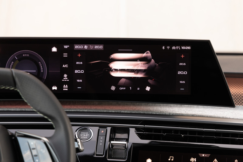 El E-5008 introduce el Panoramic i-Cockpit®, una evolución del sistema de conducción más icónico de Peugeot, que eleva la experiencia a bordo con una espectacular pantalla curva flotante de 21 pulgadas, una interfaz más intuitiva y una disposición envolvente que sitúa al conductor en el centro de la acción desde el primer kilómetro.
