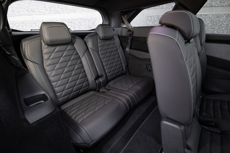 Uno de los grandes atractivos del nuevo E-5008 es su habitáculo adaptable para siete adultos, con asientos cómodos incluso en la tercera fila, donde se incluyen reposacabezas ajustables, luz de lectura, toma de 12V y portavasos. Las dimensiones interiores permiten un uso real del vehículo como SUV familiar sin comprometer el confort.