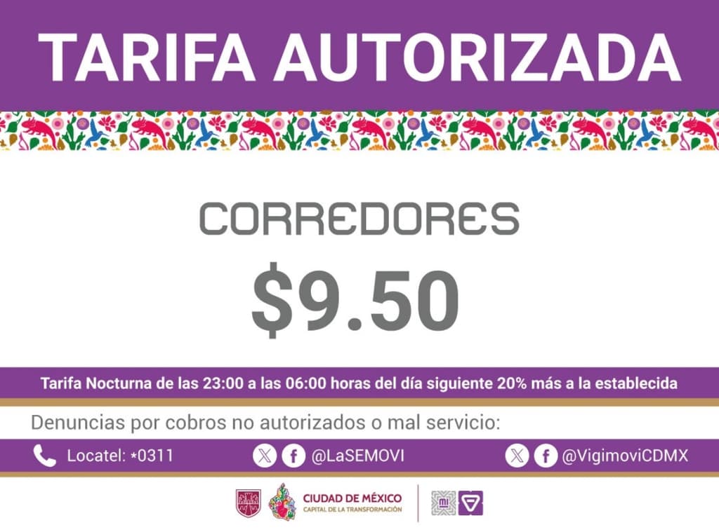 - Se ha aprobado un aumento de $1.50 en las tarifas actuales de los servicios de transporte de Ruta y Corredor. Estas nuevas disposiciones se harán públicas en la Gaceta de la Ciudad de México.