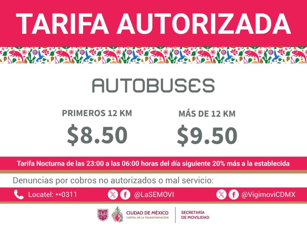 Este incremento aplica únicamente a rutas y corredores concesionados y no incluye transportes como el Metro, Metrobús o Tren Ligero.