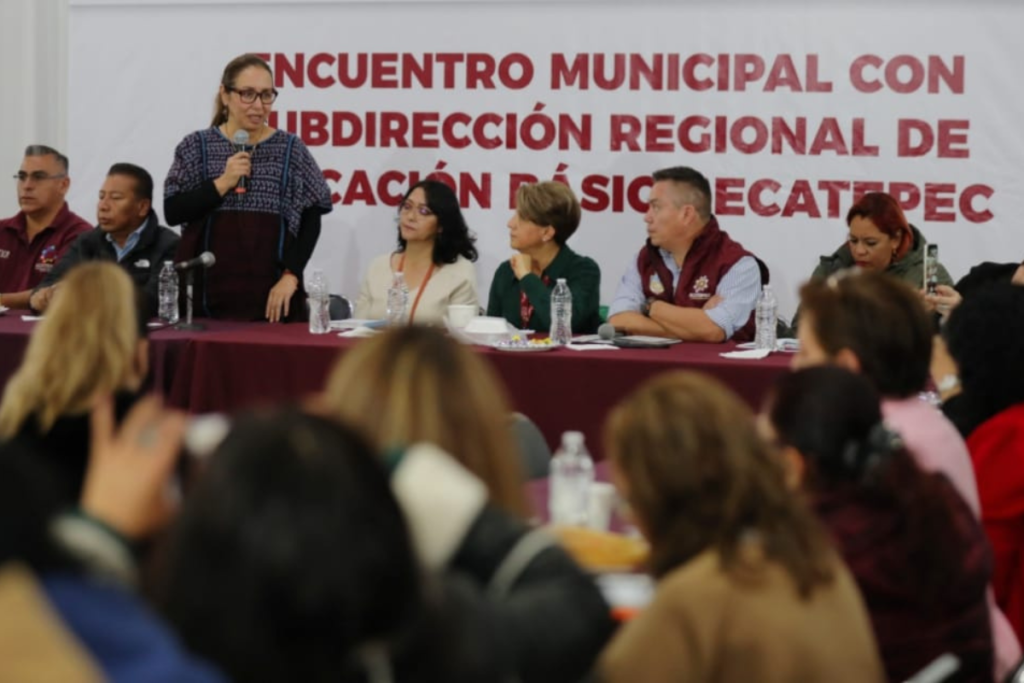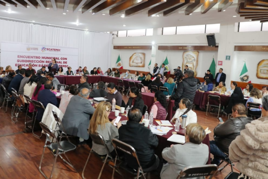 La alcaldesa de Ecatepec, Azucena Cisneros Coss, encabezó el Encuentro Municipal con la Subdirección Regional de Educación Básica, con el objetivo de reforzar el diálogo con maestras y maestros y coordinar acciones para mejorar la calidad educativa y la seguridad en los planteles.