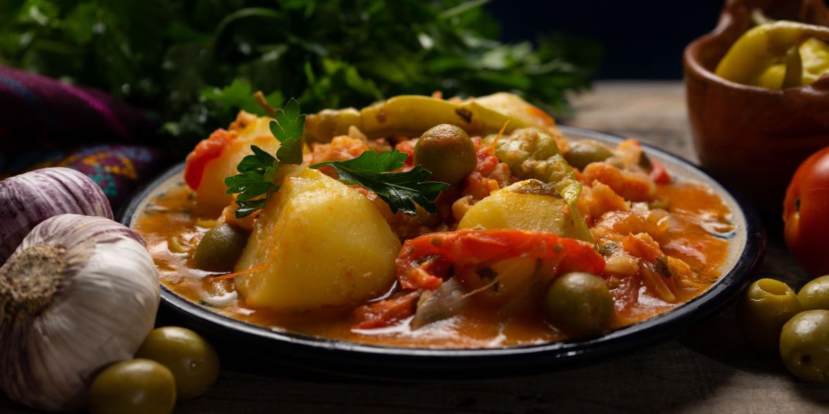 Agrega el bacalao desmenuzado, las papas, las aceitunas, las alcaparras y los chiles güeros. Mezcla con suavidad para no romper el pescado. Cocina 15 minutos más a fuego bajo. Ajusta de sal solo si es necesario.