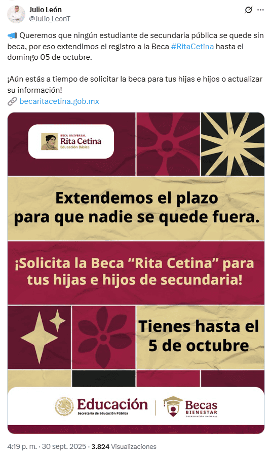 Lee además: Beca Rita Cetina: quiénes recibirán el pago extra en 2025