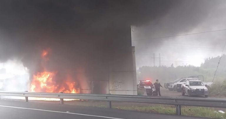 Grupos rivales se enfrentaron con palos y piedras, mientras que en territorio tlaxcalteca los manifestantes incendiaron una camioneta. También quemaron rollos de plástico bajo un puente, lo que generó columnas de humo visibles a varios kilómetros.