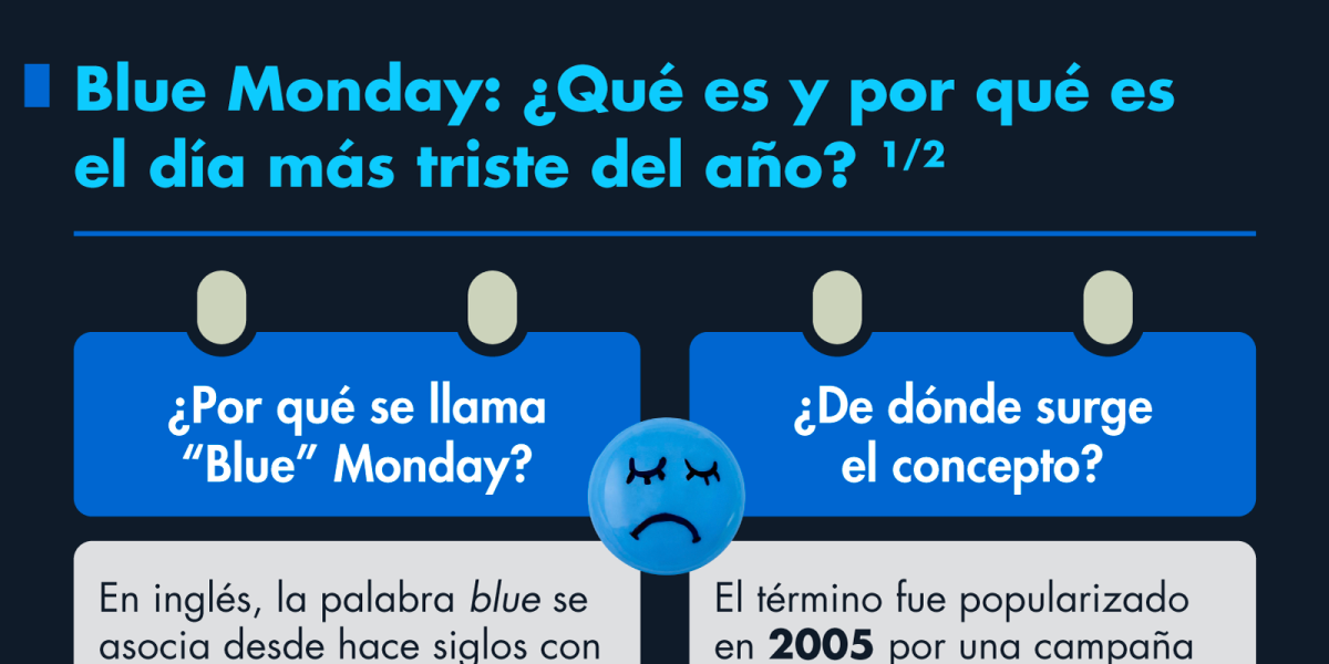 Cada año, el tercer lunes de enero el llamado “Blue Monday” reaparece en medios y redes sociales por ser considerado el día más triste del año. Aunque no existe evidencia científica que esto sea realidad, existen algunos factores y tendencias que se agrupan para que este día (y en general el mes de enero) sea difícil para muchas personas.