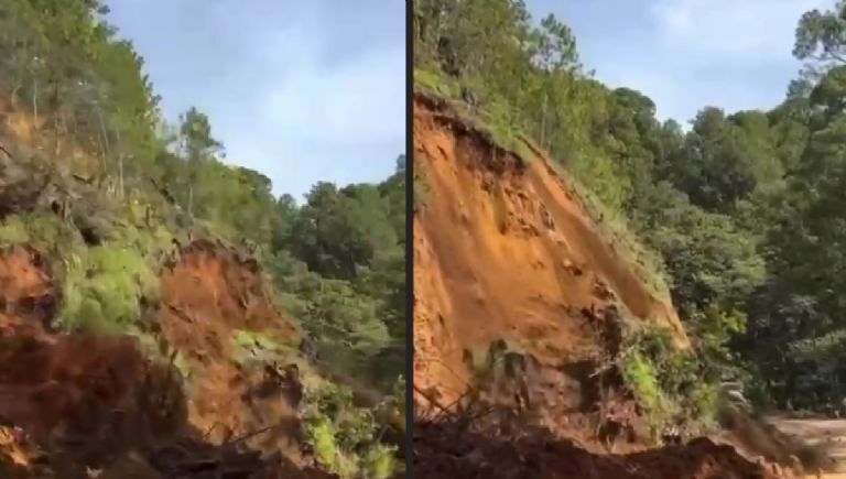 A través de un video que fue captado en el momento exacto y viralizado en redes sociales, se observa el momento del derrumbe, el cual bloqueó totalmente el paso y puso en riesgo la vida de los hombres.
