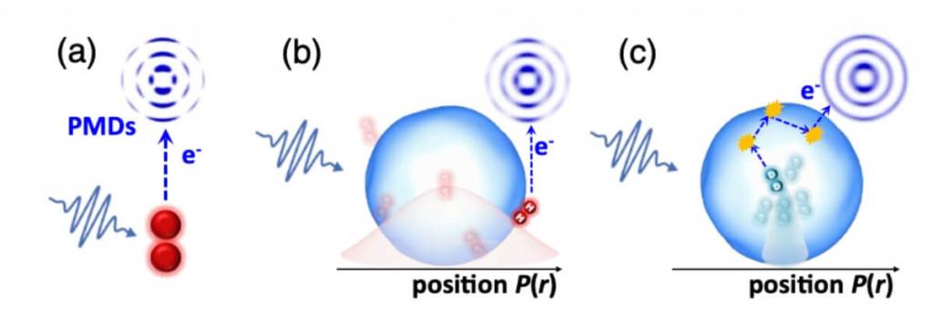 Estas estructuras, en condiciones normales, se presentan claramente definidas. Pero si el electrón sufre muchas colisiones internas al escapar del nanodrople, las estructuras se difuminan. Por tanto, la nitidez de esos patrones es una señal directa del nivel de deslocalización de la molécula dentro de la gota.
