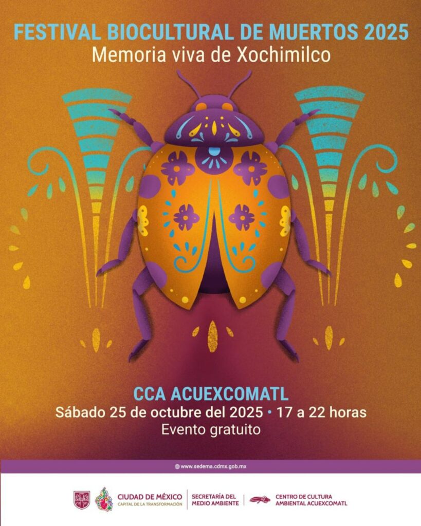 La Secretaría del Medio Ambiente (Sedema) de la CDMX, a través del Centro de Cultura Ambiental Acuexcomatl, celebra el Festival Biocultural de Muertos 2025, una experiencia única que une tradición, arte y naturaleza bajo el lema “Memoria viva de Xochimilco”.