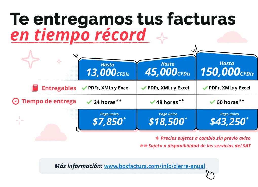 A medida que se acercan las fechas de cierre de año —cuando empresas, despachos y áreas contables preparan declaraciones, auditorías y conciliaciones— contar con el 100% de tus facturas se vuelve una tarea indispensable. Tener absolutamente todos los CFDI emitidos y recibidos es lo que permite asegurar cifras correctas, evitar aclaraciones con el SAT y garantizar un cierre fiscal sin sobresaltos. Los expertos de Box Factura han desarrollado soluciones especializadas en descarga masiva, diseñadas para empresas con altos volúmenes donde la velocidad y estabilidad son esenciales. Estas herramientas permiten recuperar años completos de información fiscal en tiempos notablemente menores, incluso cuando se trata de millones de comprobantes. Su infraestructura y experiencia garantizan un proceso de descarga seguro, estable y verdaderamente escalable, diseñado para empresas con altos volúmenes y necesidades especiales.