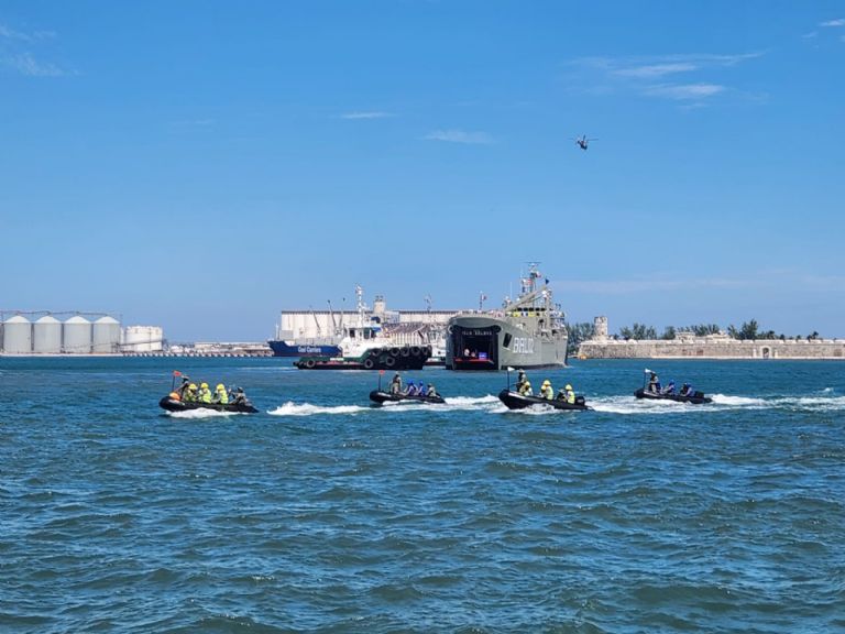 “México empieza en sus mares. (…) Las y los marinos navales estamos siempre listos para servir a México”, puntualizó.