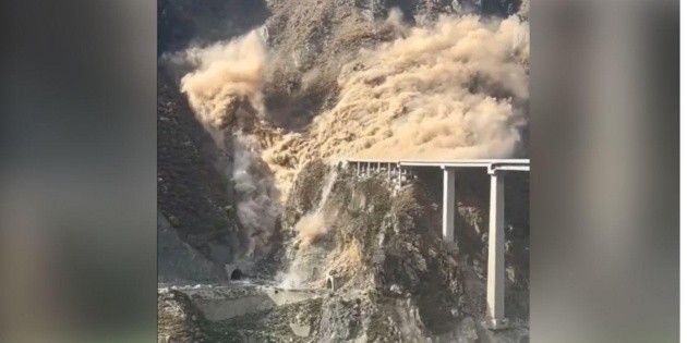 Las imágenes muestran cómo un desprendimiento de tierra arrasa con una parte del puente, que se desploma bajo el peso y el impacto, cayendo sobre el río que cruzaba. La obra formaba parte de una autopista clave que conecta Sichuan y el centro del país con la región del Tíbet.