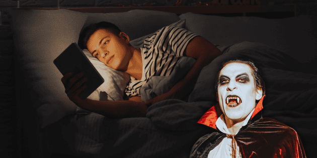 El término “vamping” proviene de la palabra “vampiro” y se refiere al hábito de permanecer despierto durante la noche usando dispositivos electrónicos, como celulares, tabletas, computadoras o videojuegos. Las personas que lo practican suelen quedarse hasta altas horas viendo videos, navegando en redes sociales o chateando.