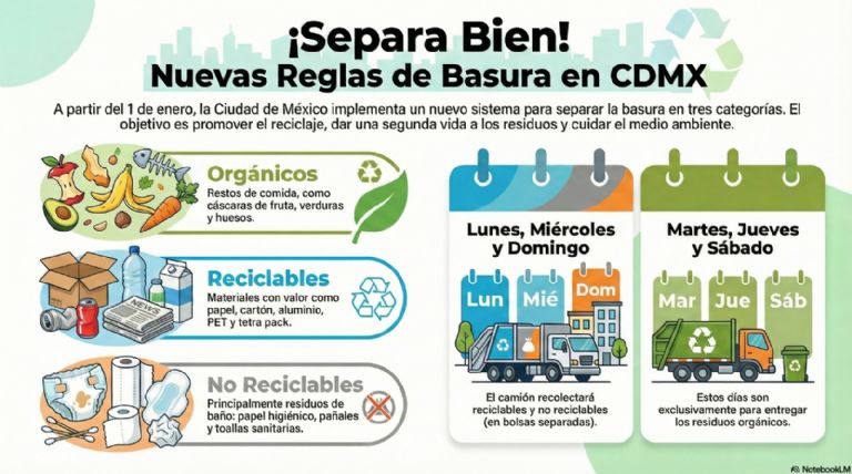 A partir de este 1 de enero de 2026, la Ciudad de México implementa un nuevo esquema obligatorio para la separación de residuos con el fin de mejorar la sostenibilidad ambiental. De acuerdo con la jefa de gobierno, Clara Brigada los ciudadanos deben clasificar su basura en tres categorías principales: orgánicos, reciclables y no reciclables. Esto es importante ya que la recolección se hará mediante un calendario.
