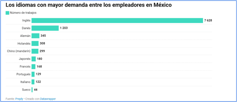 En cuanto a demanda laboral, el panorama también es claro: el inglés encabeza con 7 mil 628 ofertas de empleo, seguido por el danés (mil 203 vacantes) y el alemán (345). El crecimiento del sector tecnológico, la llegada de nuevas empresas y el impulso del nearshoring están moviendo a México hacia un mercado donde trabajar con equipos multiculturales ya no es excepción, sino regla.