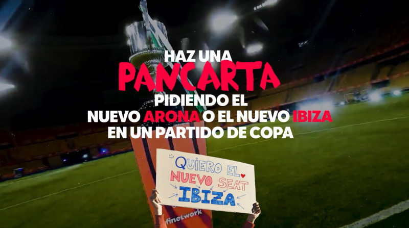 La campaña “Pídelo en el campo” nace de una idea tan sencilla como brillante: recuperar la tradición de las pancartas en los estadios y convertirlas en una oportunidad real. Los aficionados solo tienen que llevar una pancarta pidiendo su coche SEAT durante los partidos. Entre todas las que aparezcan en los estadios, se sortearán un nuevo SEAT Ibiza y un nuevo SEAT Arona.