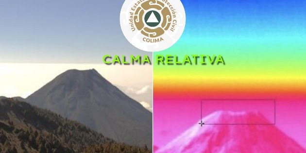 Para completar la información, la cuenta oficial de Protección Civil Estatal Colima compartió un par de imágenes con la presencia del Volcán de Fuego; una con la medición geotérmica del cuerpo volcánico y otra como luce a ojo normal. Se solicita a la población mantenerse informada a través de medios oficiales sobre la actividad volcánica en Colima.