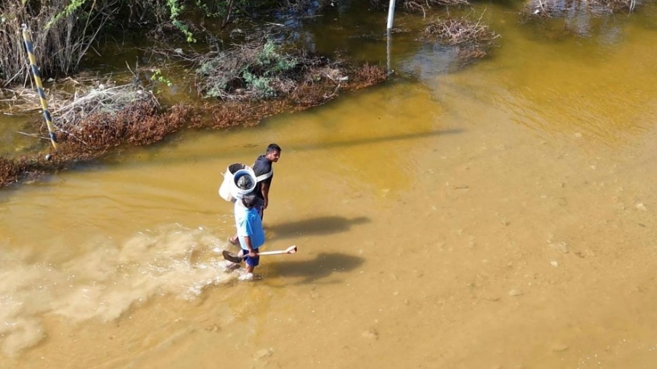 Desesperados por esta situación, los habitantes tomaron palas y picos, y se trasladaron a la zona conocida como la Boca Barra, donde de manera manual con ayuda de personal de la Marina, abrieron un canal para el desfogue del agua.