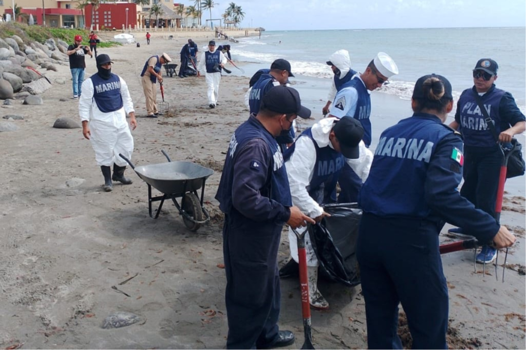 El gobierno federal señaló que la contaminación por hidrocarburos se extiende por más de 600 kilómetros del Golfo de México, por lo que se mantienen labores de contención, limpieza y vigilancia en 223 kilómetros de zonas afectadas, donde se han recolectado 430 toneladas de material para mitigar el impacto ambiental y dar seguimiento al fenómeno.