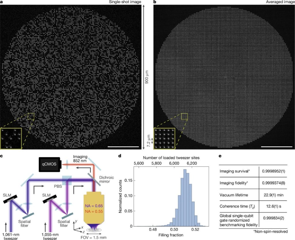 - Hannah J. Manetsch; Gyohei Nomura; Elie Bataille; Kon H. Leung; Xudong Lv; Manuel Endres. A tweezer array with 6,100 highly coherent atomic qubits. Nature (2025). DOI: 10.1038/s41586-025-09641-4.