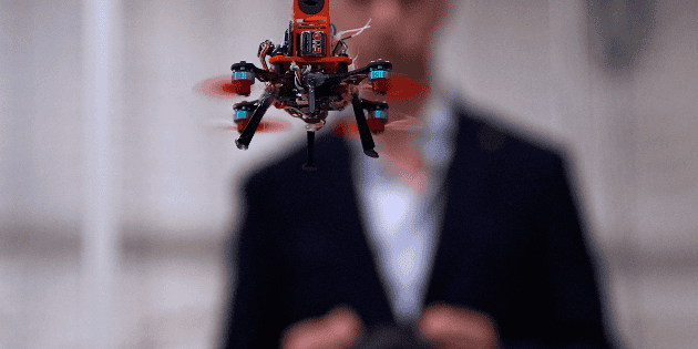 En cambio, su dron cabe en la palma de su mano, está hecho principalmente de materiales económicos de grado hobby y puede operar en la oscuridad. Un pequeño sensor ultrasónico, no muy diferente de los utilizados en los grifos automáticos de los baños públicos, imita el comportamiento de los murciélagos, emitiendo un pulso de sonido de alta frecuencia y usando el eco para detectar obstáculos en su camino.