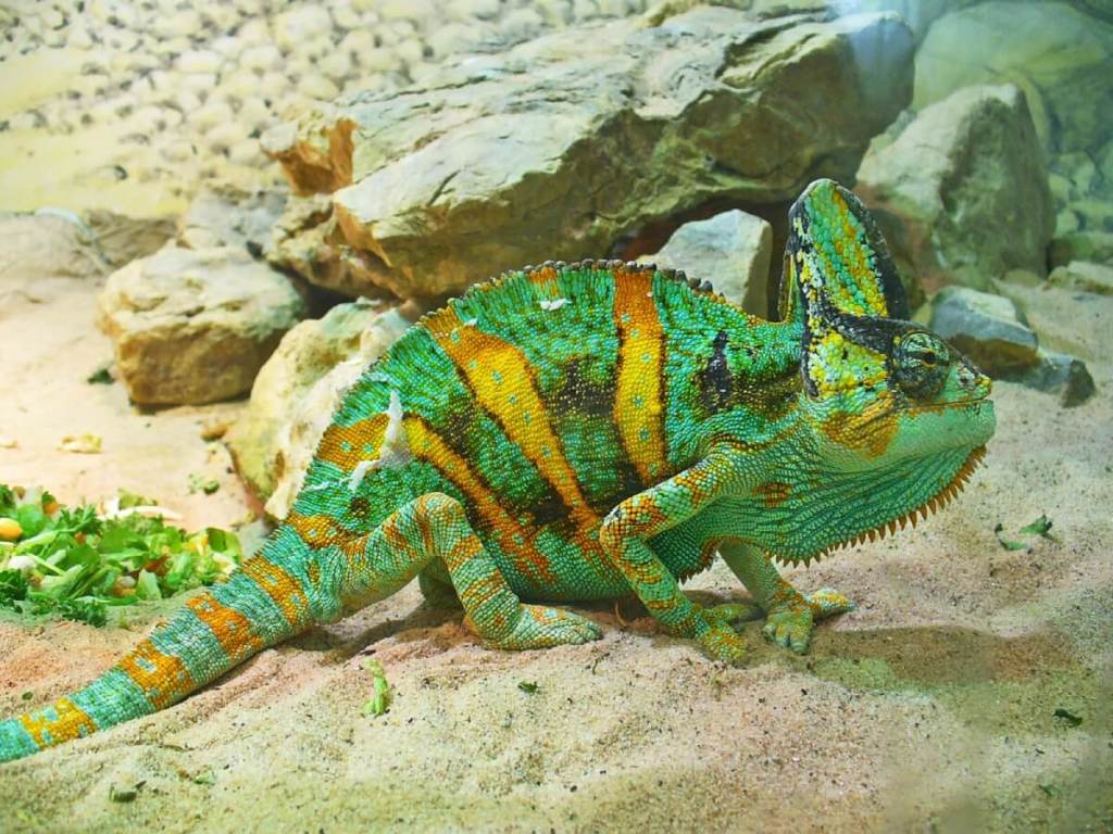 Imagen real del camaleón de Yemen o camaleón velado (Chamaeleo calyptratus). Fuente: Wikipedia