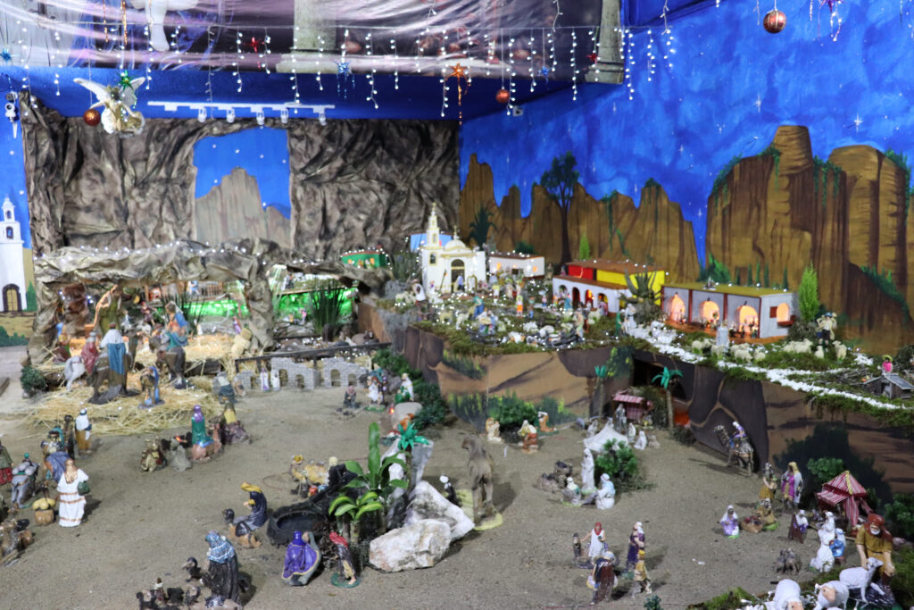 La historia ubica el nacimiento de Jesucristo en Medio Oriente, la familia Ontiveros (en esta ocasión) en un pueblo mexicano, uno cerquita de un desierto y, curiosamente, a unos pasos de un bosque en medio de montañas y de un campo de hortalizas. Este mundito de más de 1000 piezas se renueva cada diciembre en el patio de una casa para ser habitado por personajes que hablan de sus años: lo más jóvenes de cerámica y yeso, lo más viejos de porcelana y barro.