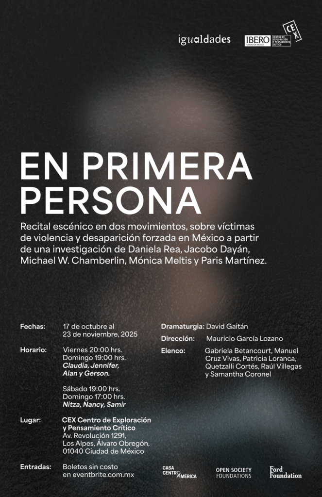 Tras una primera temporada que conmovió profundamente al público y despertó un diálogo urgente, En Primera Persona regresa a los escenarios del 17 de octubre al 23 de noviembre, en el Centro de Exploración y Pensamiento Crítico (CEX) de la Universidad Iberoamericana.
