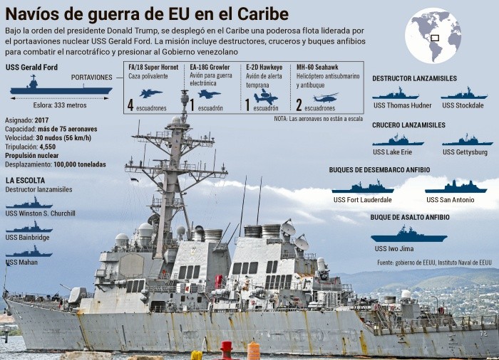 A su vez, Trump ha dicho en los últimos días que EU pronto comenzará a realizar ataques terrestres sobre grupos narcotraficantes en territorio venezolano, aunque su propia jefa de gabinete, Susie Wiles, admitió en una entrevista publicada ayer que el mandatario necesitaría la autorización del Congreso para mover fichas en este sentido.