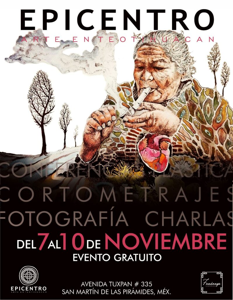 En Epicentro, descubrirás el trabajo de 20 artistas, incluyendo figuras consolidadas, talentos emergentes de Teotihuaca e invitados nacionales. Se exhibirán diversas disciplinas como pintura, fotografía, cortometraje, barro, obsidiana, ámbar, así como obras de mascareros y cartoneros.