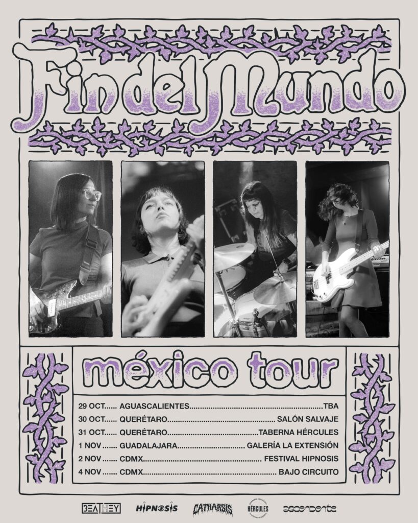 Aunque esta no es la primera vez que Fin del Mundo viene a México, es quizá la que más les emociona, como nos contó su baterista Julieta Limia. Por un lado, pues finalmente a ella y sus compañeras se les hizo presentarse en el Hipnosis. Por el otro, han podido tocar en otros estados del país y darán un concierto más íntimo en CDMX.
