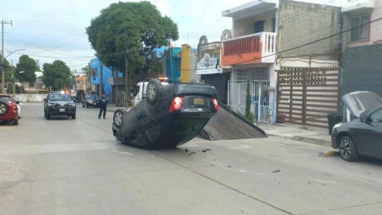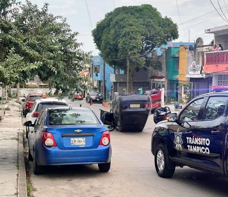 Agregó que la volcadura ocurrió durante la mañana de este miércoles en la zona norte de Tampico, específicamente en las calles Colombia, esquina con República de Cuba, de la colonia Las Américas, donde un automóvil le pega a otro que estaba estacionado.
