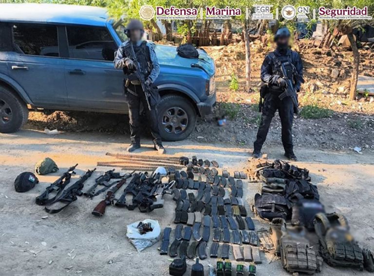 -En Amatenango de la Frontera, elementos de la Guardia Nacional (GN) y Ejército Mexicano detuvieron a cinco personas, cuatro de ellas de nacionalidad extranjera, les aseguraron siete armas largas, un arma corta, 27 cargadores, cartuchos y cuatro chalecos tácticos.