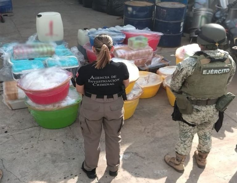 Autoridades federales y estatales asestaron un duro golpe a la delincuencia organizada al asegurar un área de concentración de material para la fabricación de drogas sintéticas en la capital sinaloense, donde se incautaron 386 kilos y 165 litros de metanfetamina, con una afectación económica estimada en 147 millones de pesos.
