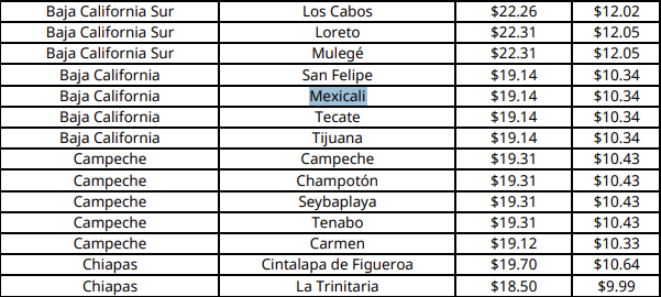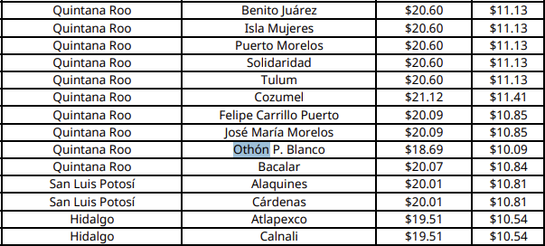 En Chetumal (Othón P. Blanco), capital de Quintana Roo, el precio máximo aplicable por kilogramo aumenta a 18.69 pesos.
