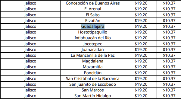 La CNE informó que el costo máximo del combustible será de 19.20 pesos en Guadalajara, la capital de Jalisco.