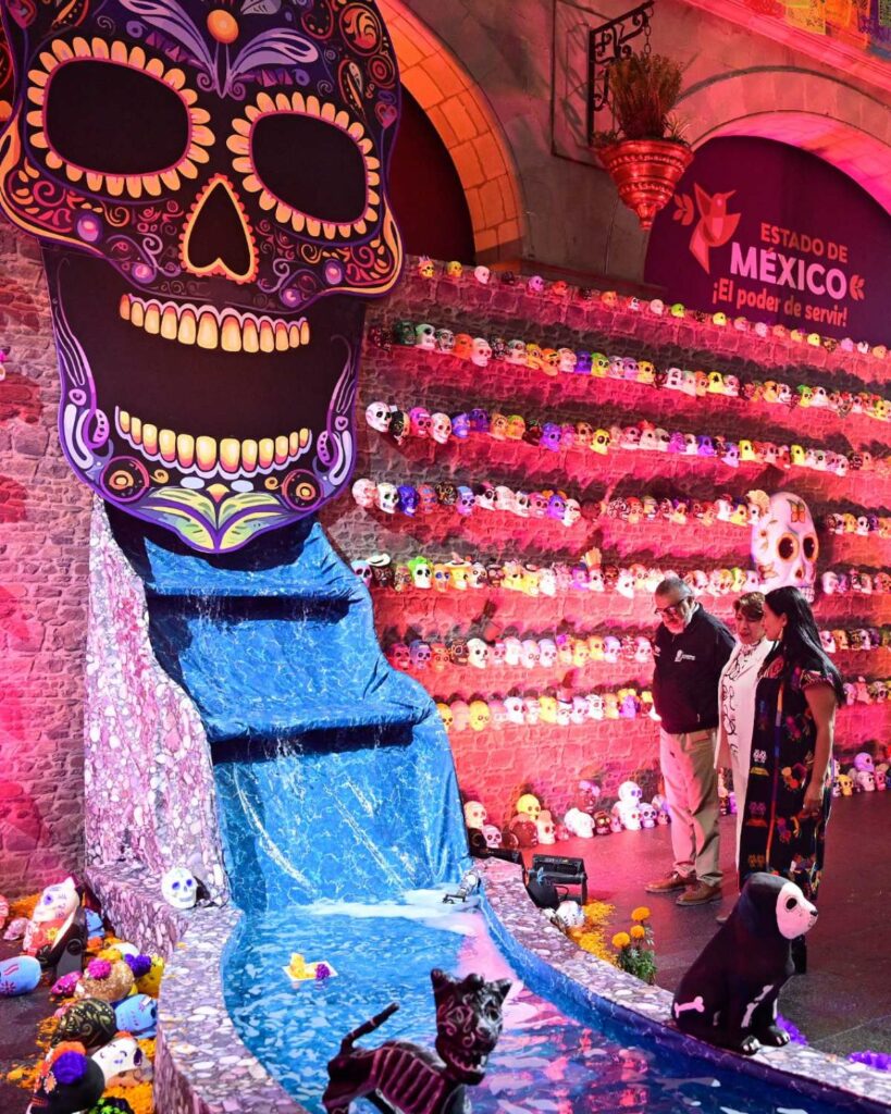 Este año, la ofrenda celebra la diversidad cultural del Estado de México como un mosaico de identidades, donde los pueblos originarios —mazahua, otomí, nahua, matlatzinca y tlahuica— encuentran eco en cada detalle de la obra.