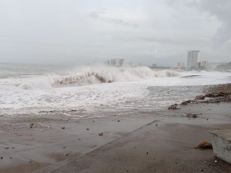 La mañana de este miércoles se mantienen los efectos del Huracán Priscilla, que ha ocasionado oleaje elevado en distintas zonas costeras del municipio de Puerto Vallarta lo que ha provocado nuevamente la salida del mar hacia áreas urbanas cercanas a la playa.