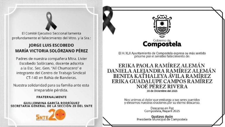 A la par, el Sindicato Nacional de Trabajadores de la Educación Sección 20, lamentó el fallecimiento de padres de Jorge Luis y María Victoria, quienes son padres de una docente en activo perteneciente a esta sección sindical.