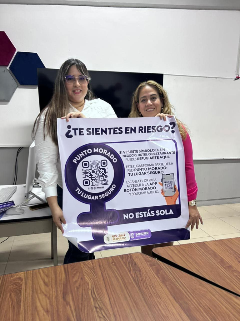 Los Puntos Morados funcionan como espacios de auxilio, con herramientas tecnológicas y canales de atención para brindar protección a las usuarias.