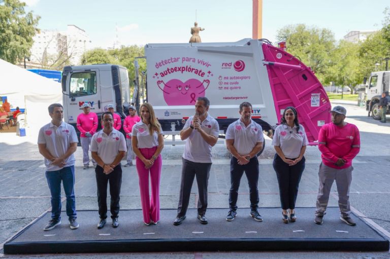 Durante todo el mes, las unidades rotuladas y los integrantes de la cuadrilla de recolección también vestidos de rosa, recorrerán la ciudad para invitar a las regiomontanas a la autoexploración.
